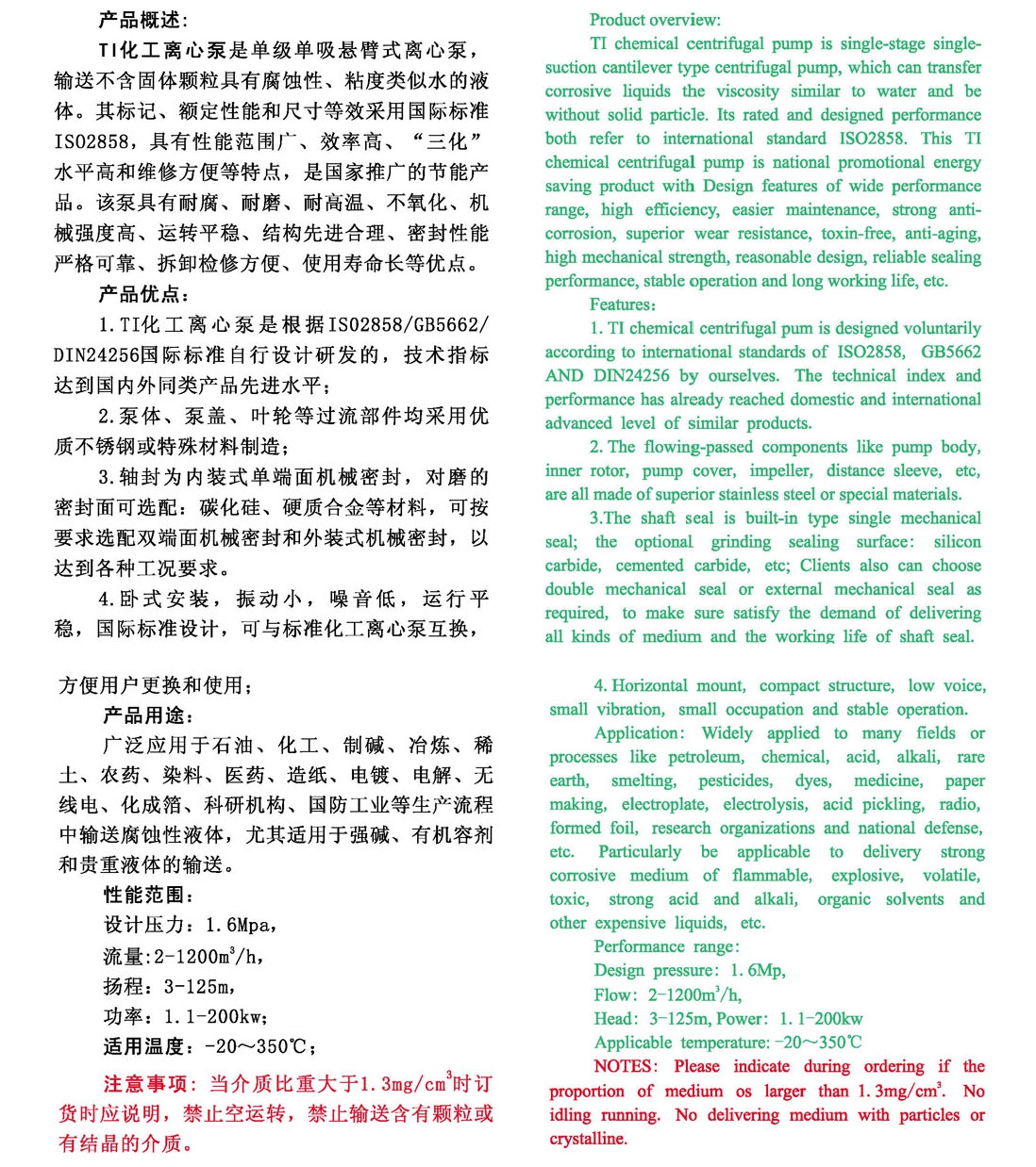 TI chemical process centrifugal pump