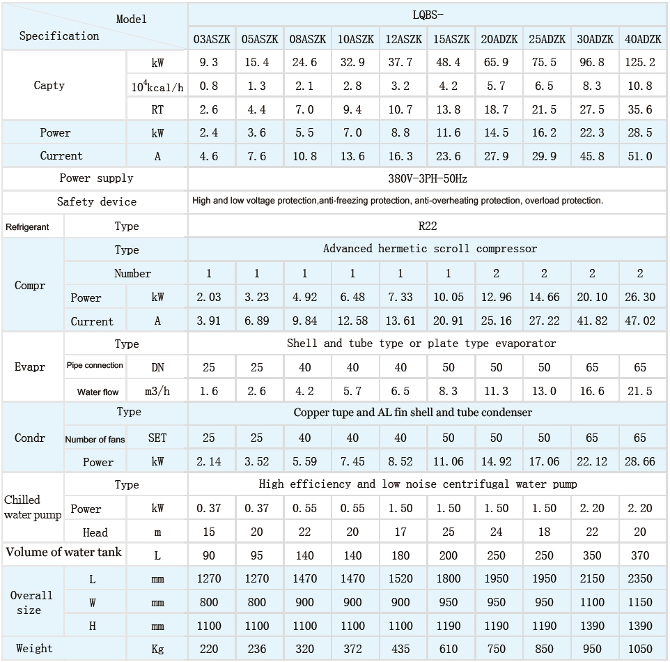 LQBSYC-xxAS(D)ZS Inlet / outlet temperature:5/3℃
